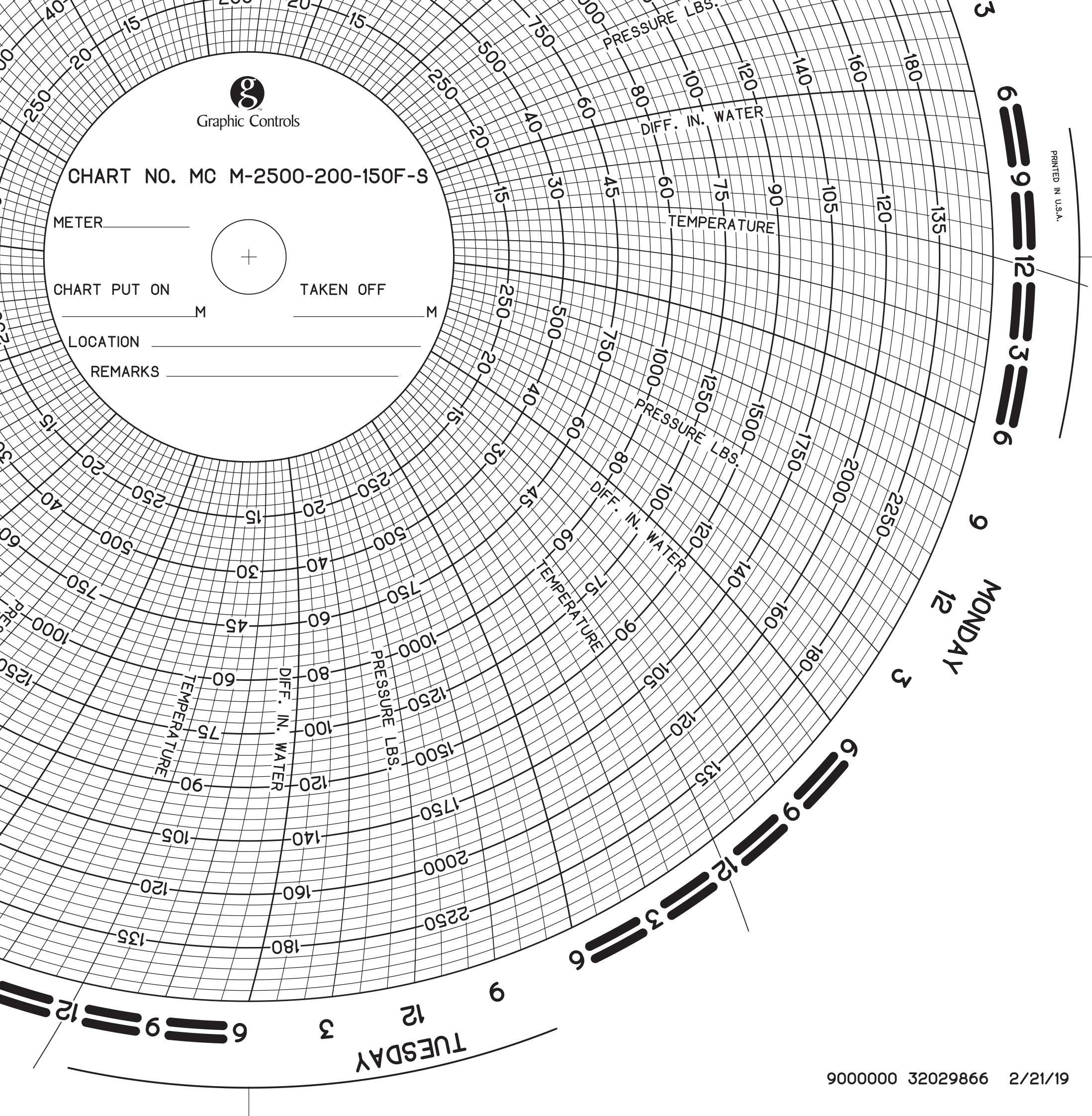 0 - 2500 Uniform Displacement PRESSURE LBS. (250 TO 2250 BY 250 )